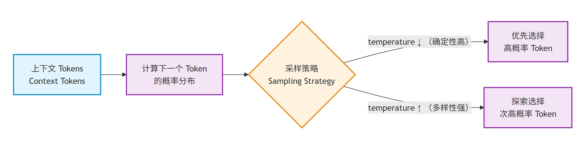 - temperature 越低:越偏向“最可能”的结果