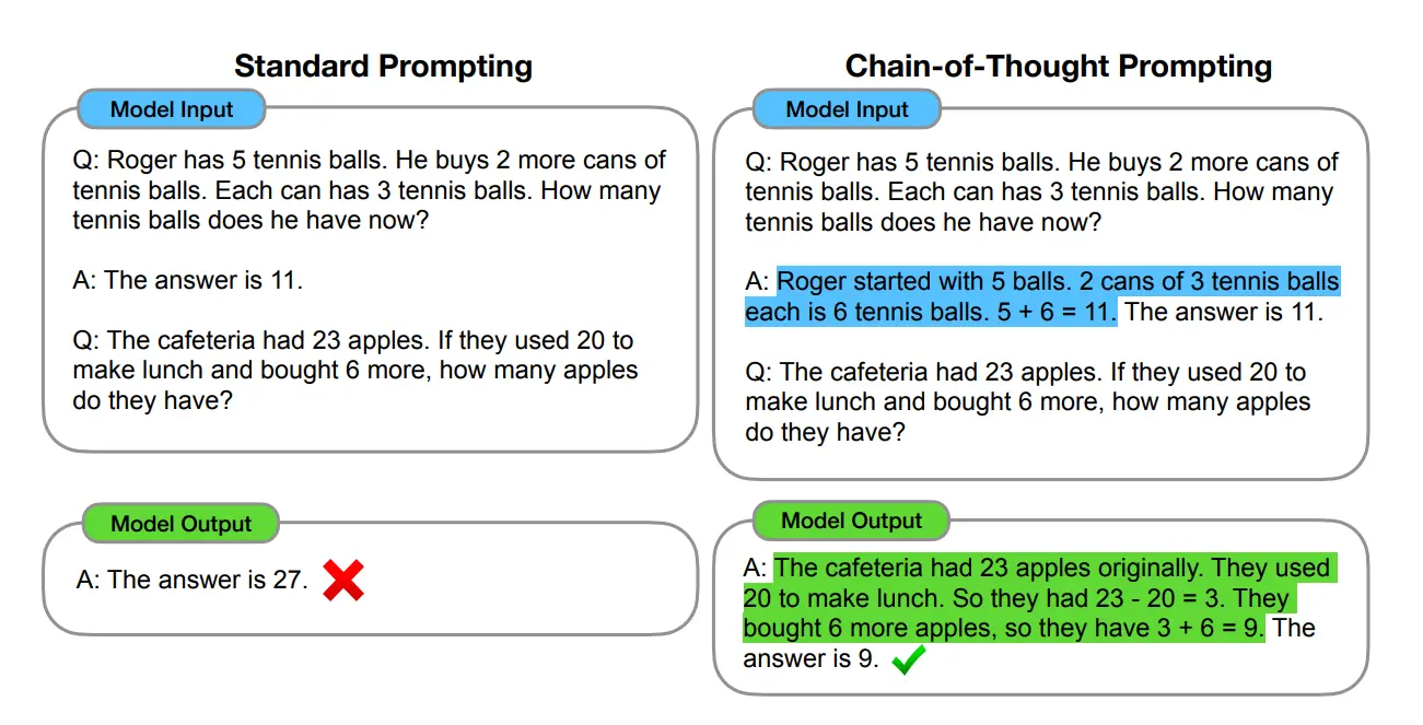 - 提高灵活性:仅仅添加一句“Let's think step by step”,就可以在现有的各种不同的大模型中使用 CoT 方法,同时,CoT 赋予的大模型一步一步思考的能力不仅仅局限于“语言智能”,在科学应用,以及 AI Agent 的构建之中都有用武之地