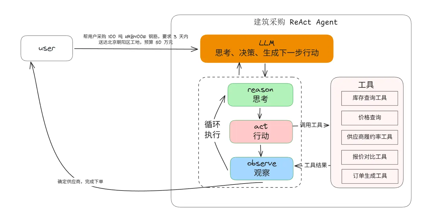 - 再执行(Execute):按步骤逐一落地,比如先调用 “库存工具” 确认钢材,再调用 “物流商工具” 报价;